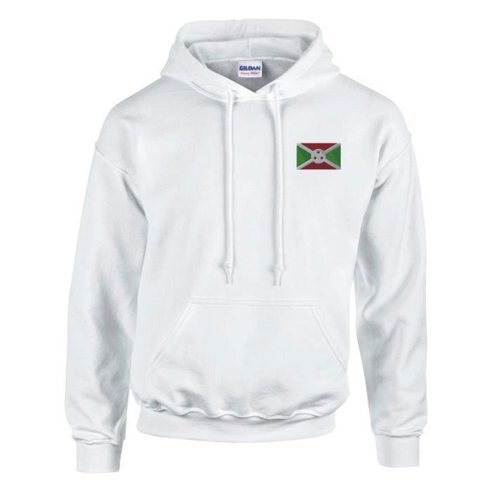 Sweat à capuche - PIXELFORMA - Drapeau du Burundi - Blanc - Manches longues - Col capuche