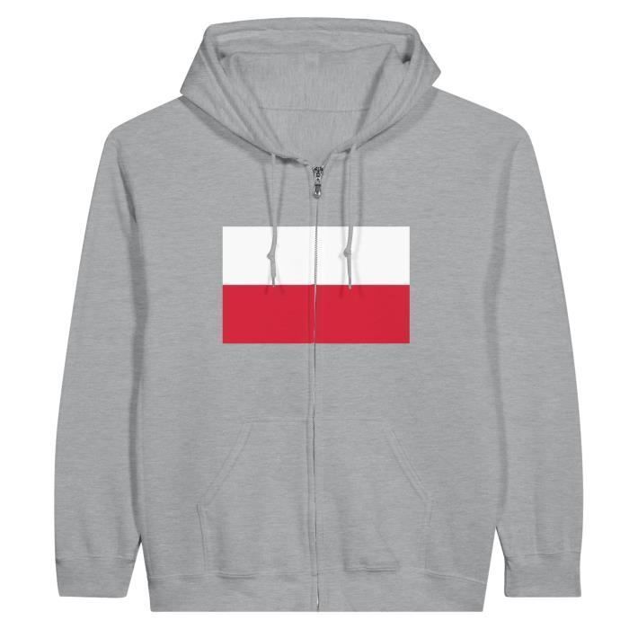 Sweat à capuche à fermeture éclair - PIXELFORMA - Drapeau de la Pologne - Gris - Manches longues - Mixte