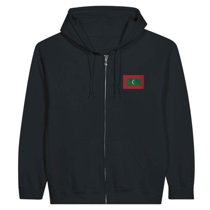 Sweat à capuche à Fermeture éclair - PIXELFORMA - Drapeau des Maldives - Noir - Manches longues - Col capuche