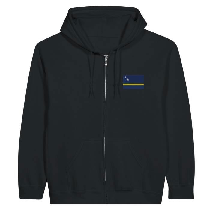 Sweat à capuche - PIXELFORMA - Drapeau de Curaçao - Noir - Длинные маншки - Col capuche