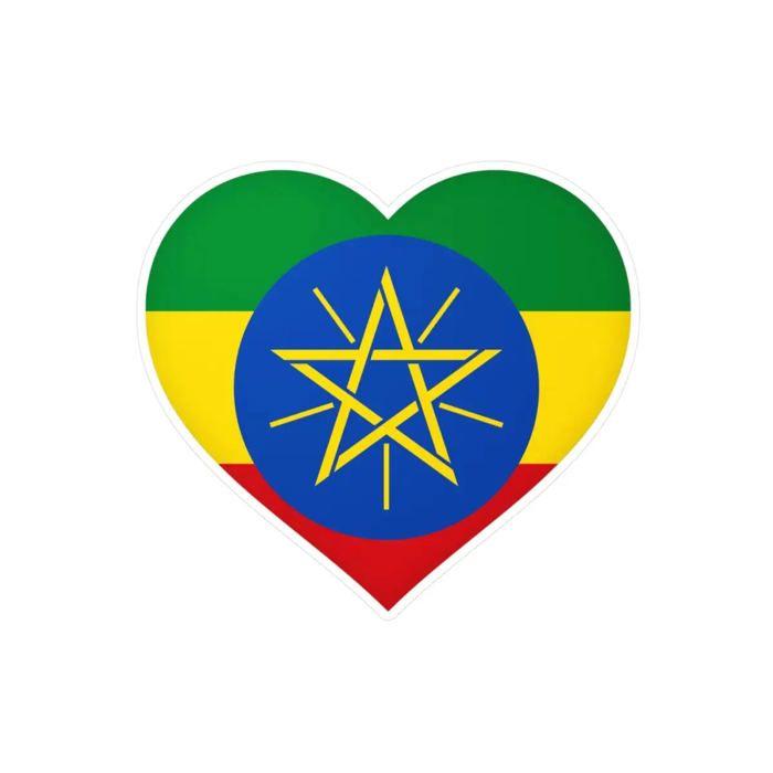Autocollant - Multicolore - Coeur Drapeau Éthiopie - 9 cm - 1000 pièces - PVC