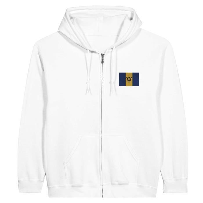 Sweat à capuche à Fermeture éclair - PIXELFORMA - Drapeau de la Barbade - Blanc - Manches longues - Mixte — купить товар онлайн с бесплатной доставкой до всему миру!