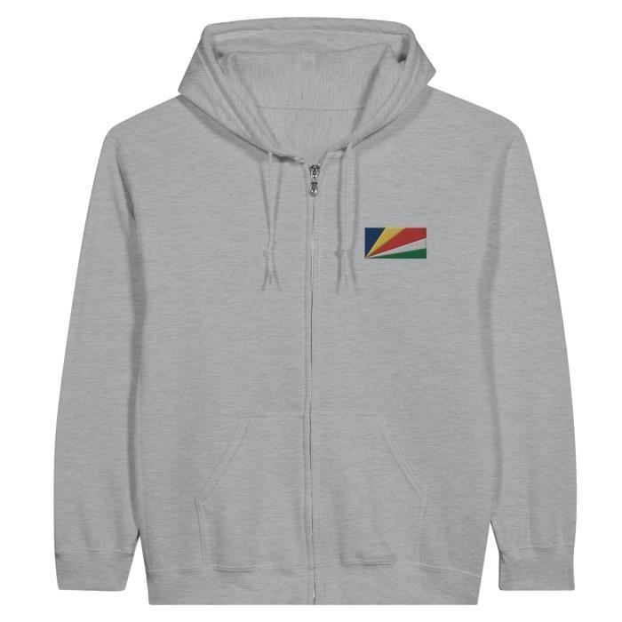 Sweat à capuche à Fermeture éclair - PIXELFORMA - Drapeau des Seychelles - Gris - Manches longues - Mixte