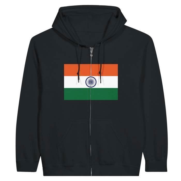 Sweat à capuche - Drapeau de l'Inde - Noir - Manches longues - Mixte - Confort optimal