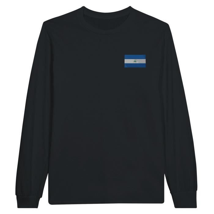 Длинная футболка с длинным рукавом - PIXELFORMA - Drapeau du Nicaragua - Noir - 100% хлопок - Regular