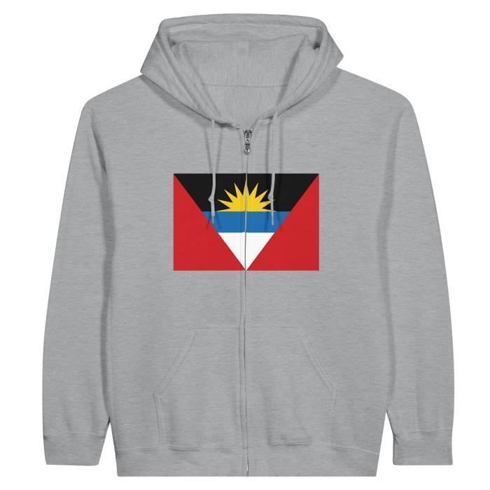 Sweat à capuche à fermeture éclair - PIXELFORMA - Drapeau d'Antigua-et-Barbuda - Gris - Confortable - Résistant