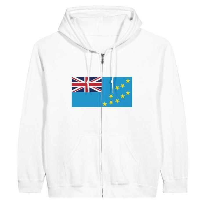 Sweat à capuche à Fermeture éclair - PIXELFORMA - Drapeau des Tuvalu - Blanc - Manches longues - Col capuche