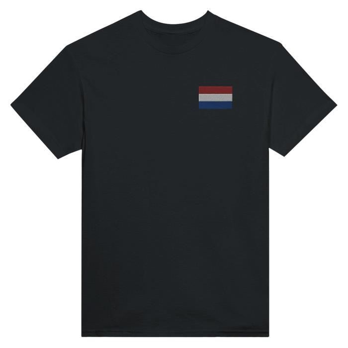 T-shirt - PIXELFORMA - Drapeau des Pays-Bas - Broderie Noir - 100% Coton - Coupe Classique