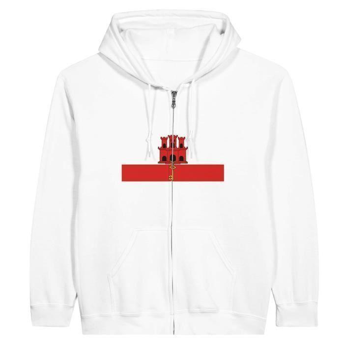 Sweat à capuche - PIXELFORMA - Drapeau de Gibraltar - Белый - Длинные маншки - Col capuche