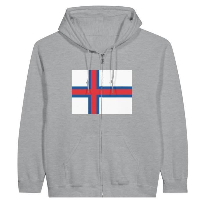 Sweat à capuche à Fermeture éclair - PIXELFORMA - Drapeau des iles Féroé - Gris - Manches longues - Col capuche