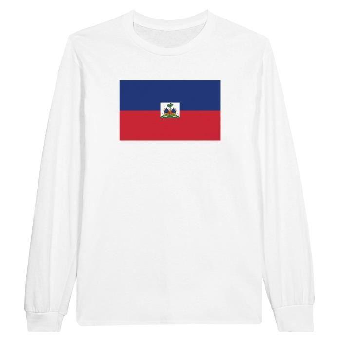 Футболка с длинными рукавами - PIXELFORMA - Drapeau d'Haïti - 100% хлопок - Длинные мужчины - Coupe régulière