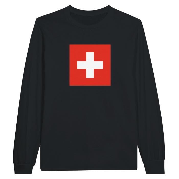 T-shirt à manches longues - Suisse - Noir - 100% coton - Design drapeau et armoiries - Coupe régulière — купить товар онлайн с бесплатной доставкой до всему миру!