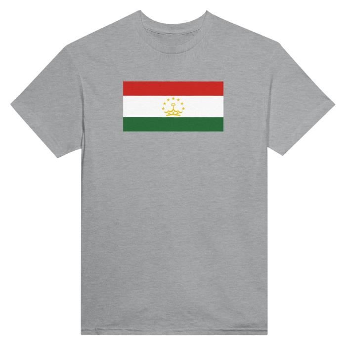 T-shirt - Drapeau du Tadjikistan - Gris - 100% coton - Manches courtes - Coupe classique