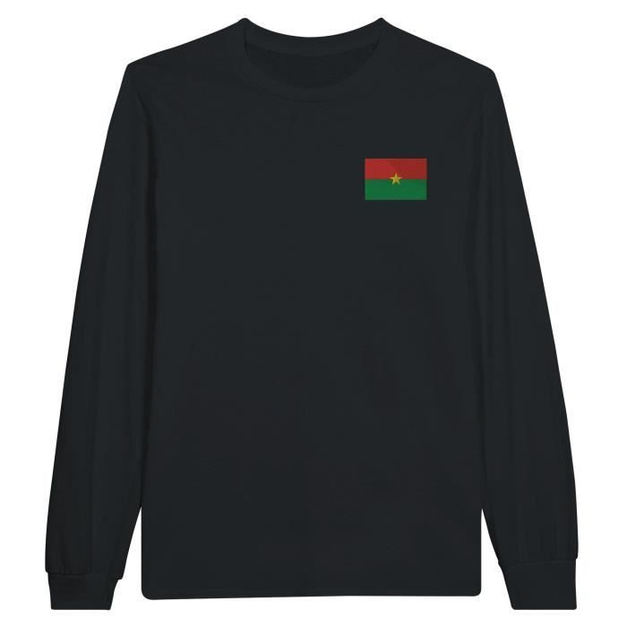 Футболка с длинными рукавами - Drapeau du Burkina Faso - Нуар - 100% хлопок - Длинные мужчины - Col classique