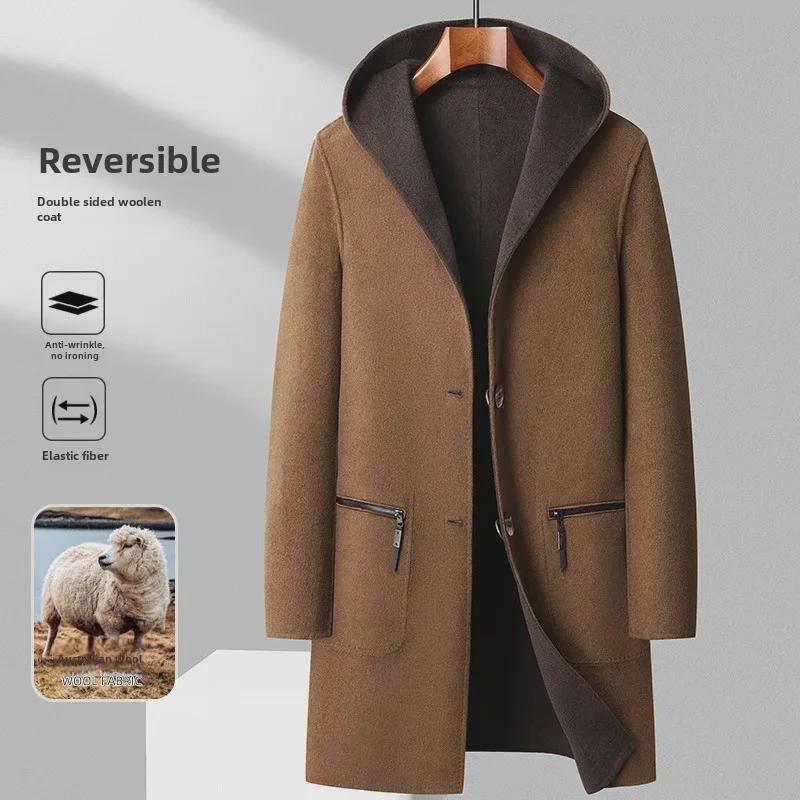 Представляем идеальное сочетание стиля и функциональности для холодных месяцев — мужское шерстяное пальто средней длины, разработанное для осенне-зимнего сезона 2023 года.. Это пальто имеет стандартный крой и среднюю толщину, обеспечивая достаточно тепла и комфорта.. Изготовлен из высококачественной шерсти, что обеспечивает долговечность и ощущение роскоши.. Двусторонний дизайн ручной работы добавляет нотку изысканности, а классический однотонный узор и строгий вырез подчеркивают его классическую привлекательность.. Кроме того, пальто оснащено большими карманами, что обеспечивает практичность без ущерба для стиля.. Это универсальное изделие идеально подходит для любого случая и гармонично сочетает в себе элегантность и повседневную практичность.