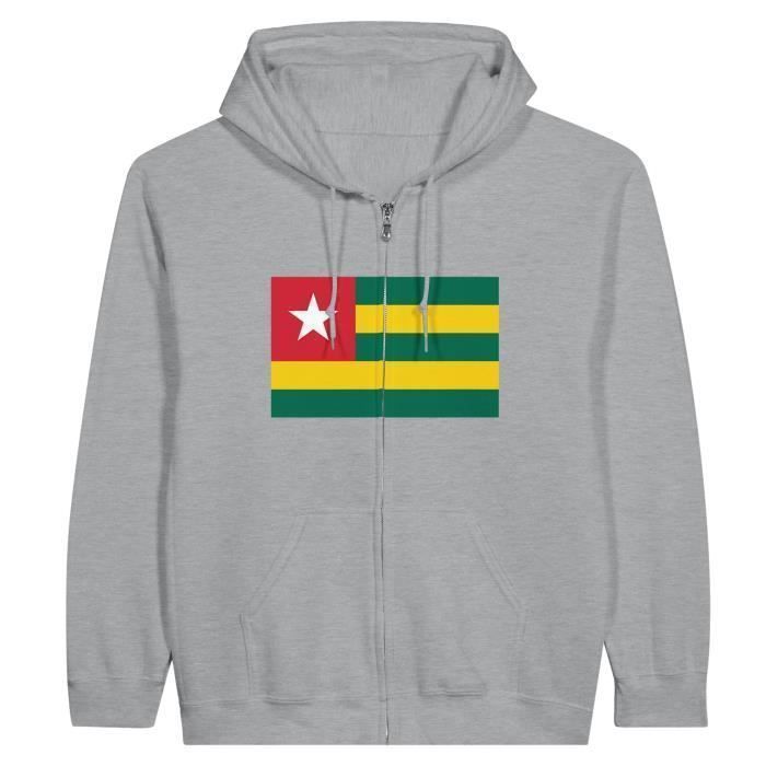 Sweat à capuche à Fermeture éclair - PIXELFORMA - Drapeau du Togo - Gris - Manches longues - Mixte — купить товар онлайн с бесплатной доставкой до всему миру!