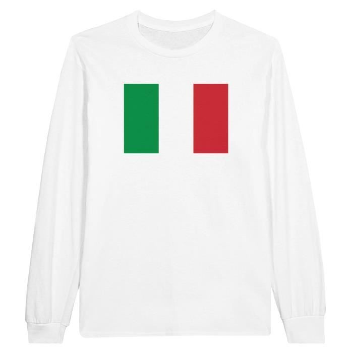 T-shirt - Drapeau de l'Italie - Blanc - 100% coton - Manches longues - Coupe régulière