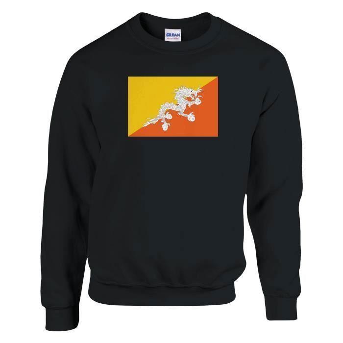 Sweat-shirt - PIXELFORMA - Drapeau du Bhoutan - Noir - Manches longues - Col classique