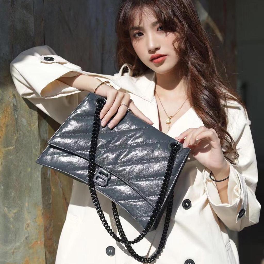 Сумка из коровьей кожи с плиссировкой в форме песочных часов и бриллиантами, весна/лето 2023 г., с пряжкой-цепочкой в форме буквы B — женская сумка через плечо/через плечо