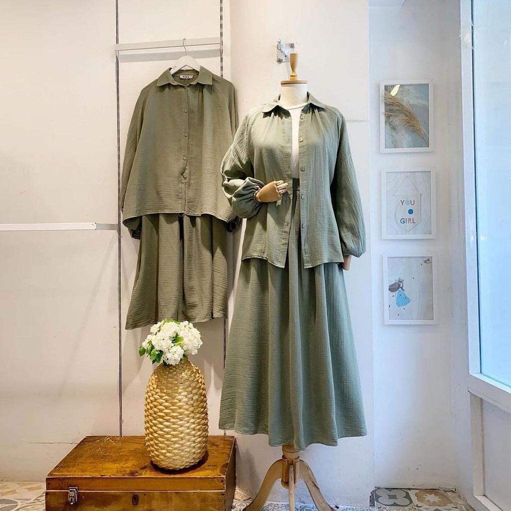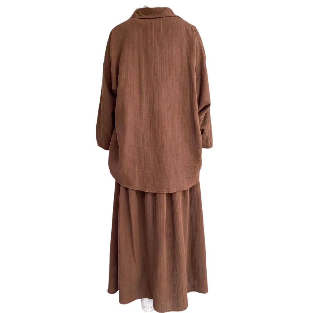 Весенняя мода 2024 года: Женский костюм с юбкой полудлинной длины и свободной рубашкой с длинным рукавом