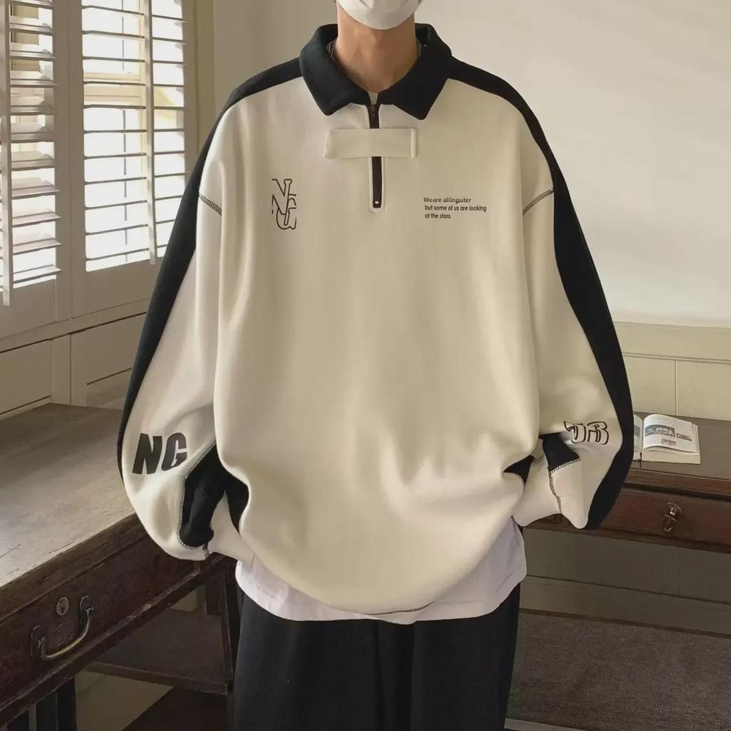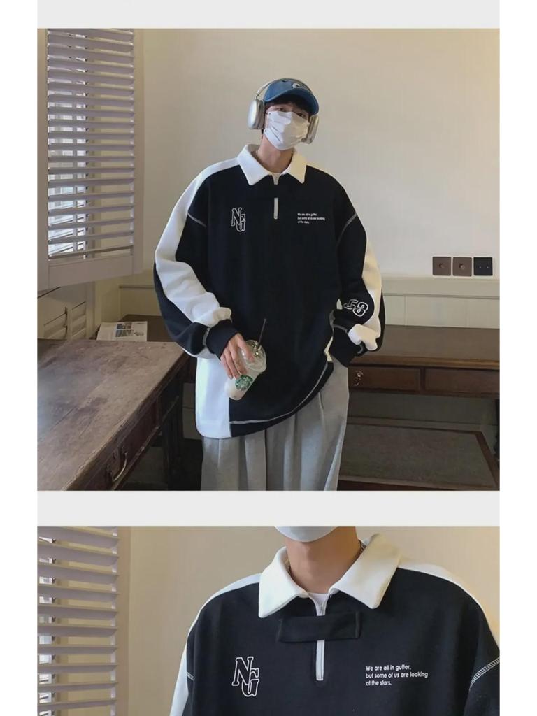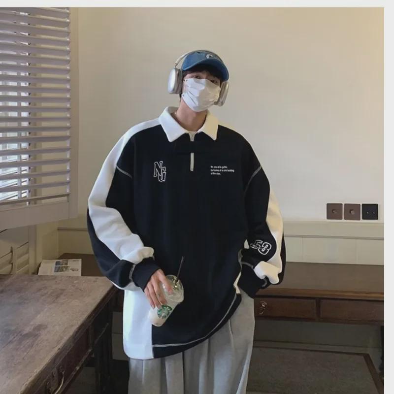 Мужская толстовка в стиле ретро с воротником-полумолнией и поло — повседневный спортивный топ на весну/осень, модный и свободный крой