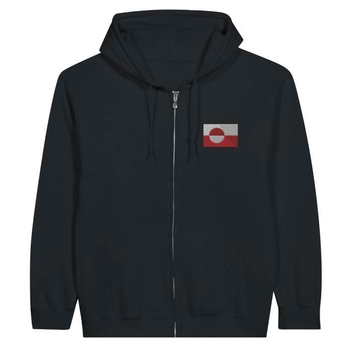 Sweat à capuche à Fermeture éclair - PIXELFORMA - Drapeau du Groenland - Noir - Manches longues - Mixte — купить товар онлайн с бесплатной доставкой до всему миру!
