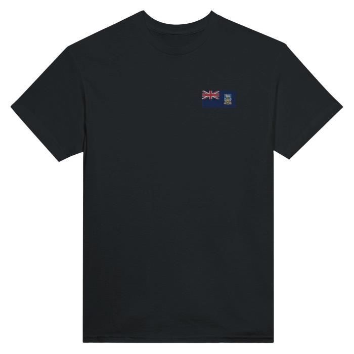 T-shirt - PIXELFORMA - Drapeau des îles Malouines - Broderie noire - 100% coton - Coupe classique