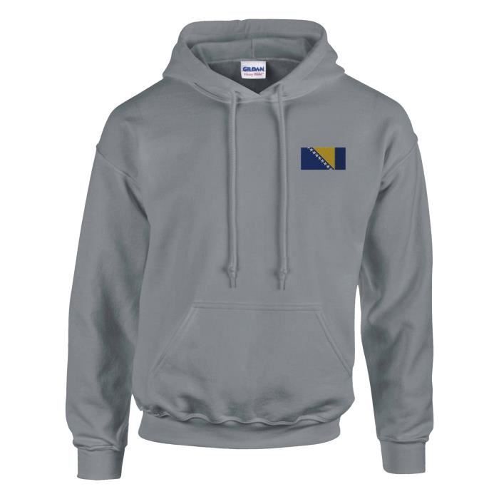 Sweat à capuche - PIXELFORMA - Drapeau Bosnie-Herzégovine - Gris - Manches longues - Col capuche