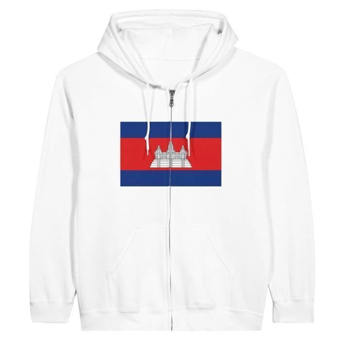 Sweat à capuche à fermeture éclair PIXELFORMA - Drapeau du Cambodge - Blanc