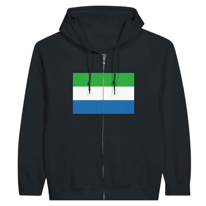 Sweat à capuche à Fermeture éclair - PIXELFORMA - Drapeau de Sierra Leone - Noir - Manches longues - Mixte
