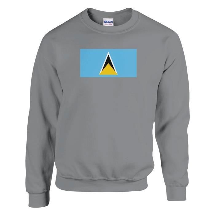 Sweat-shirt - PIXELFORMA - Drapeau de Sainte-Lucie - Gris - Manches longues - Col arrondi