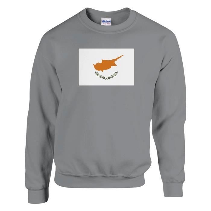Sweat-shirt - PIXELFORMA - Drapeau de Chypre - Gris - Manches longues - Col classique