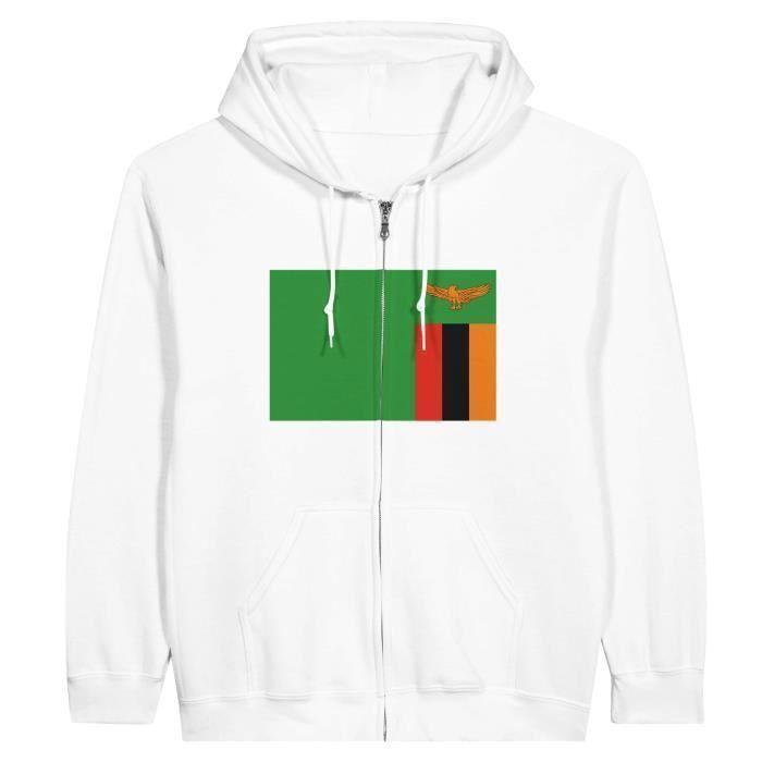 Sweat à capuche - Drapeau de la Zambie - Blanc - Polyester-Coton - Manches longues - Mixte