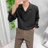 Мужская модная рубашка с длинными рукавами и кубинским воротником из ледяного шелка — свободная, повседневная, стильная для весны и осени