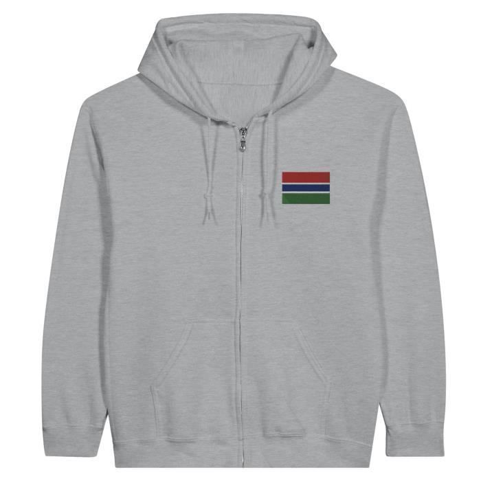 Sweat à capuche à fermeture éclair - PIXELFORMA - Drapeau de la Gambie - Gris - Manches longues - Mixte — купить товар онлайн с бесплатной доставкой до всему миру!
