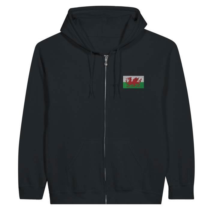 Sweat à capuche à fermeture éclair Drapeau du pays de Galles broderie en Noir