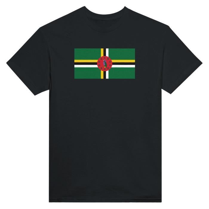 T-shirt - PIXELFORMA - Drapeau de la Dominique - Noir - 100% coton - Manches courtes