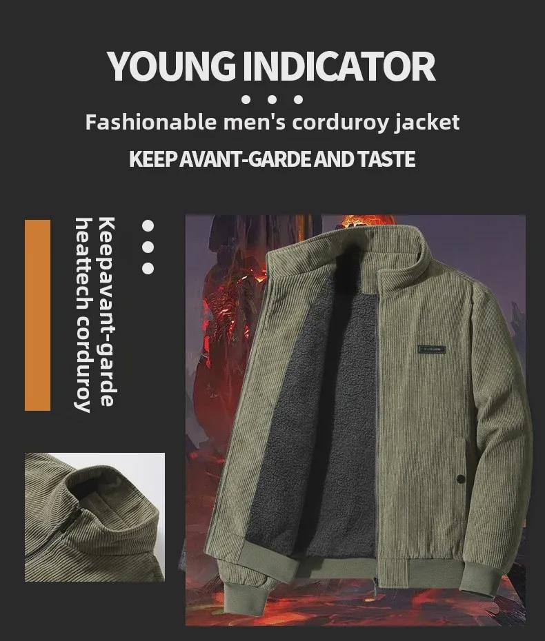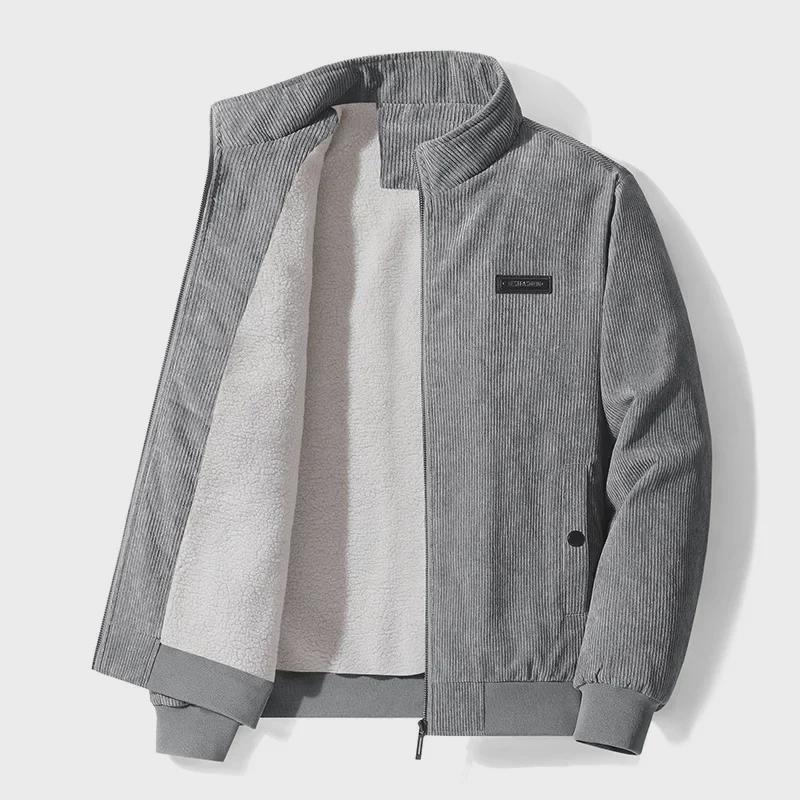 Мужское зимнее вельветовое пальто из овчины с бархатной подкладкой из плотного хлопка, большой размер