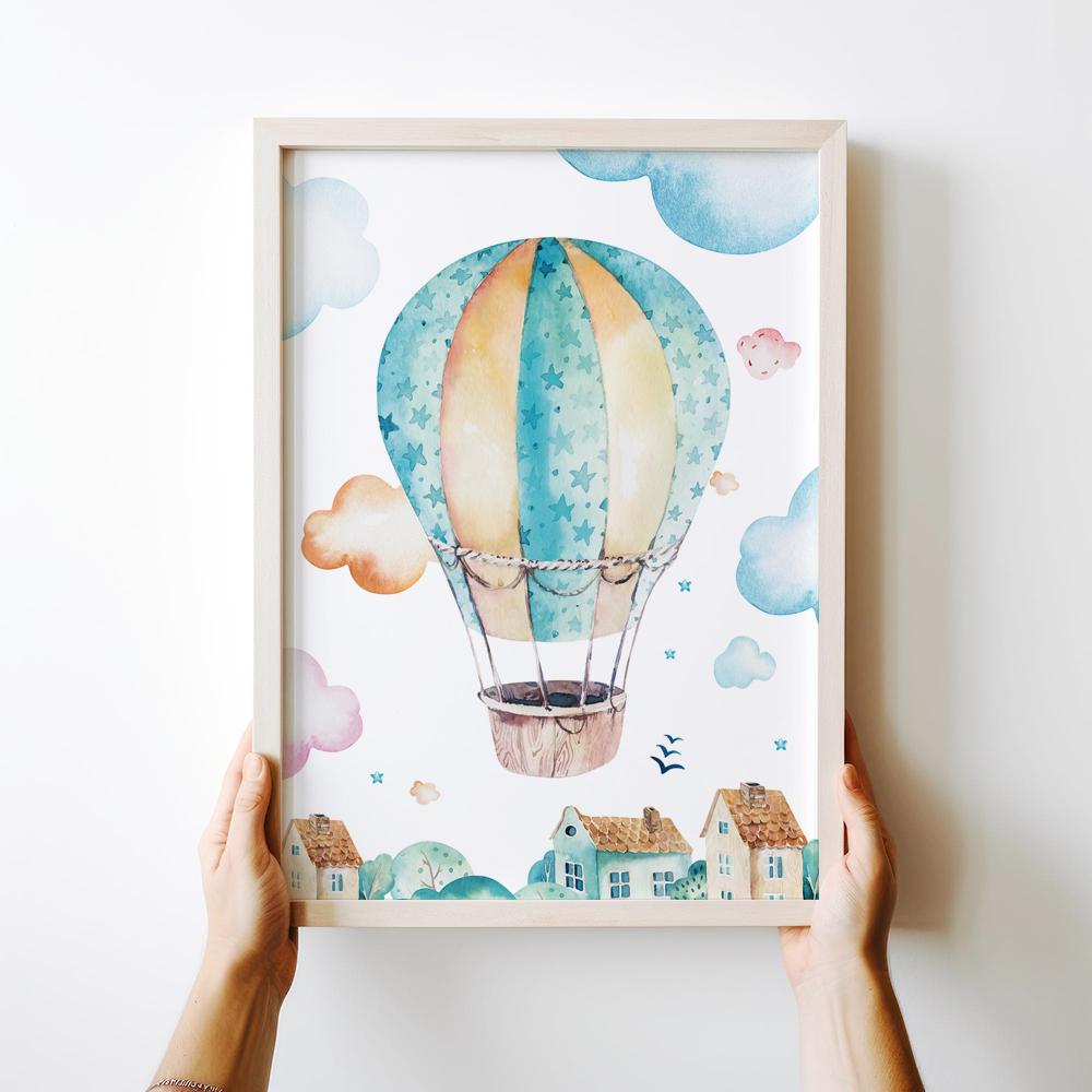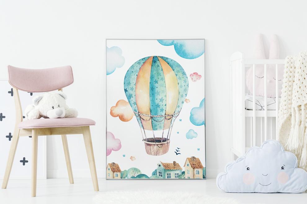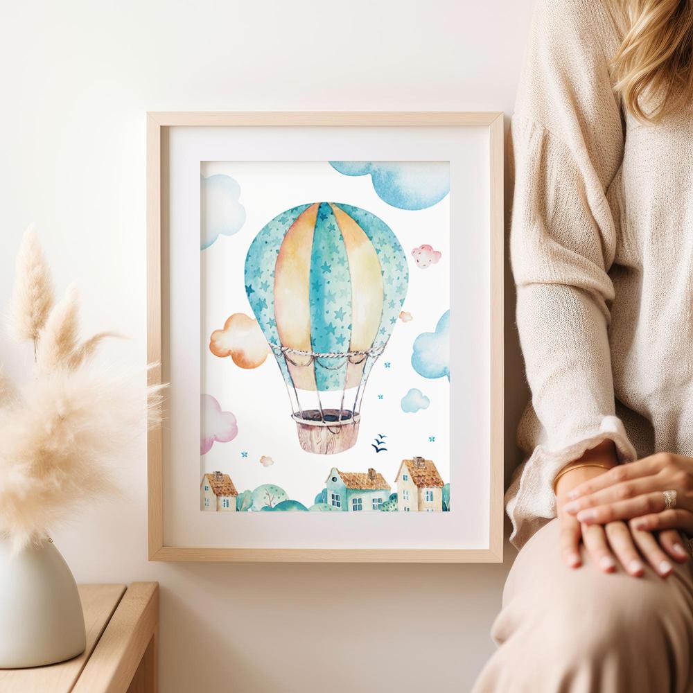 Плакат для детской комнаты воздушный шар, полет на воздушном шаре