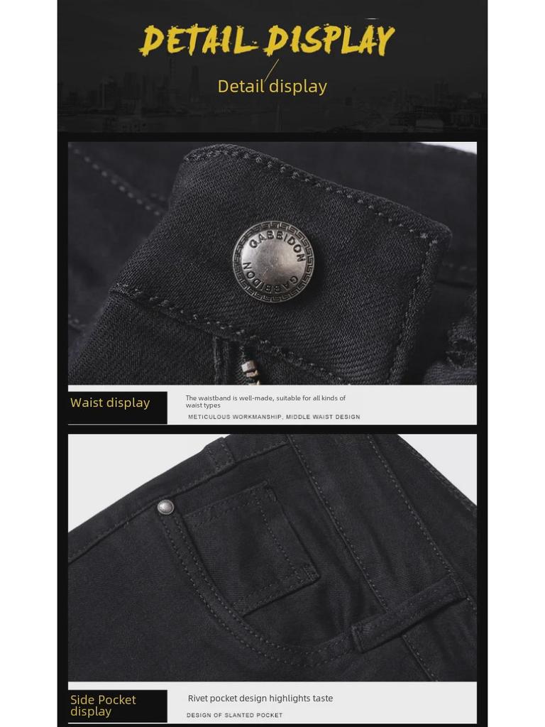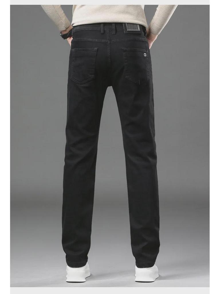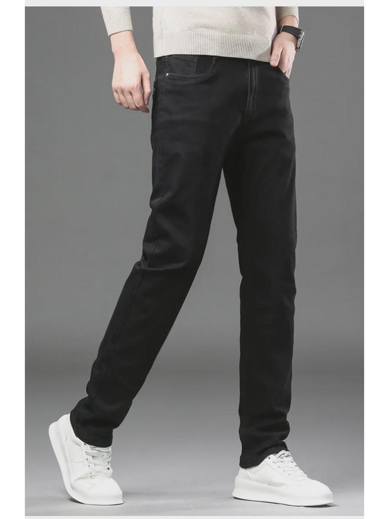 Эти мужские черные джинсы прямого кроя с завышенной талией станут незаменимым дополнением к любому гардеробу и идеально подойдут для переходной погоды весной и осенью.. Изготовленные из высококачественного хлопка, они обеспечивают комфорт и стиль, что делает их идеальными для повседневной носки.. Облегающий крой обеспечивает современный силуэт, гарантируя модный образ для любой повседневной прогулки.. Независимо от того, собираетесь ли вы на непринужденную прогулку с друзьями или на неформальное вечернее мероприятие, эти джинсы станут универсальным выбором.