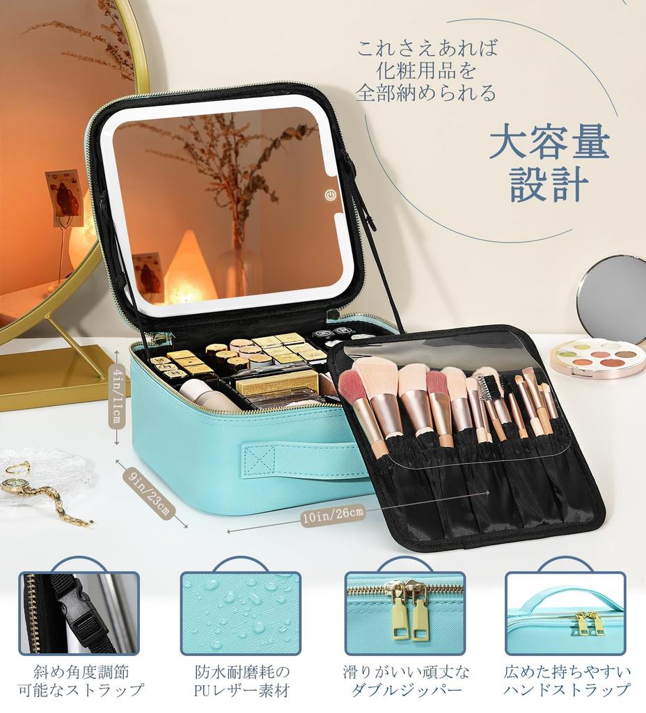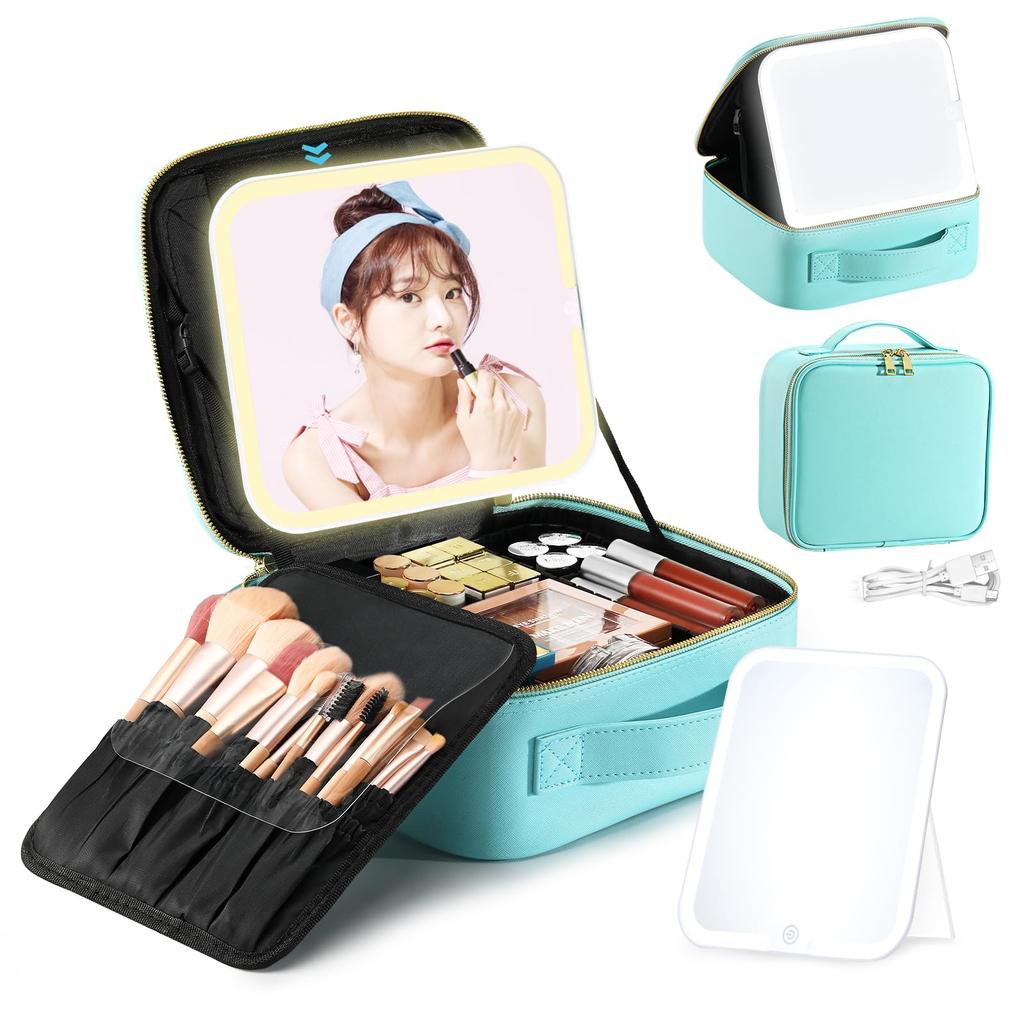 Косметичка Luxspire Косметичка Сумка для кистей для макияжа Зеркало со светодиодной подсветкой 3-цветная подсветка Плавная регулировка яркости Косметичка из ЭВА Косметичка Косметичка