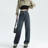 Женские джинсы широкого кроя сине-серого цвета с высокой талией, маленького размера, длиной до пола, с нестандартной косой пряжкой, идеально подходят для весны и осени.