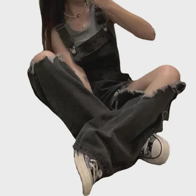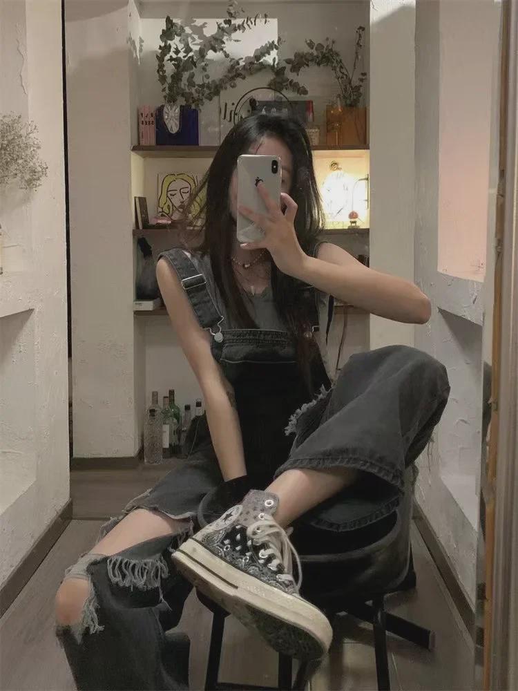 Лето 2023 года. Узкий джинсовый комбинезон с высокой талией — уличный стиль для горячих девушек