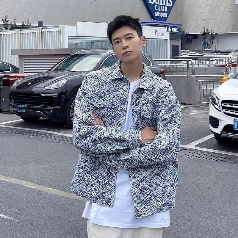 Мужская джинсовая куртка American Brand High Street из сине-белого твила — купить товар онлайн с бесплатной доставкой по всему миру!