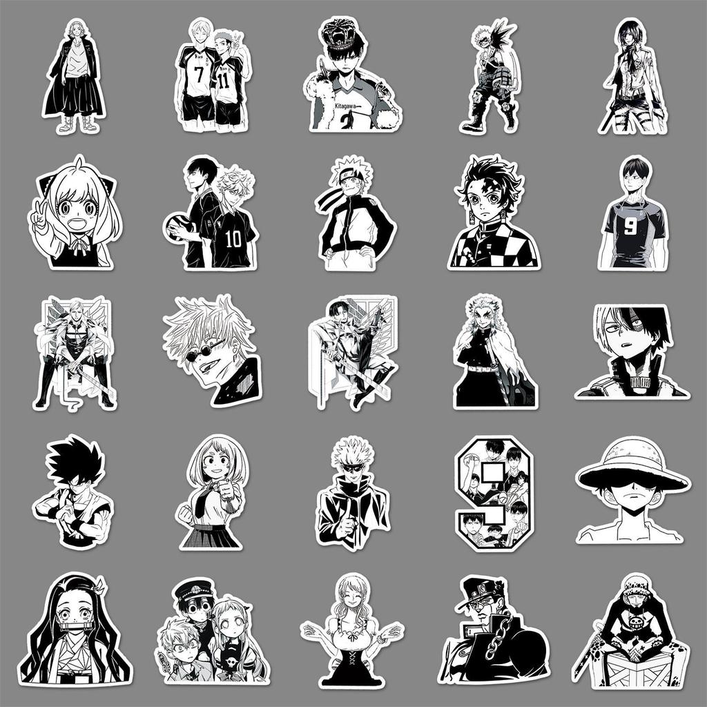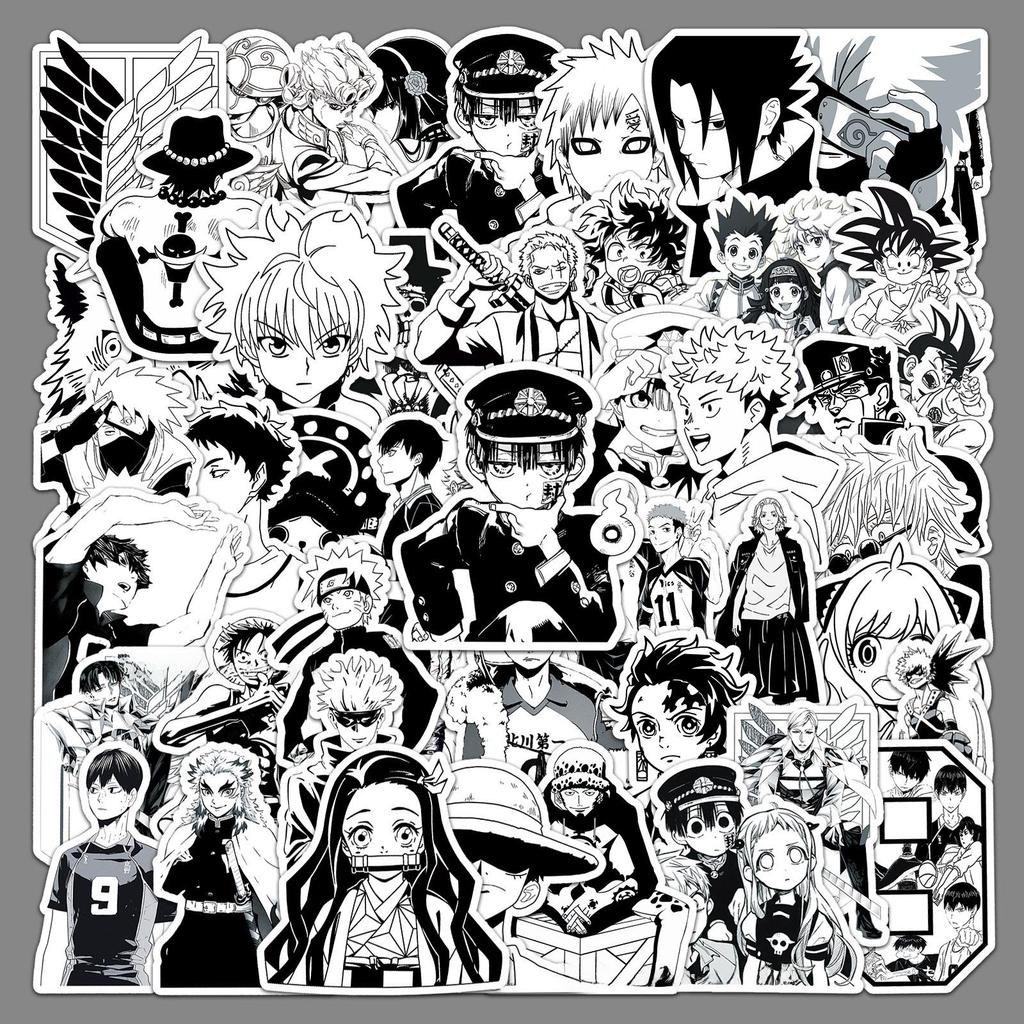 50 черно-белых наклеек с японскими аниме-персонажами: Водонепроницаемый декор для чехлов для телефонов, багажа и многого другого