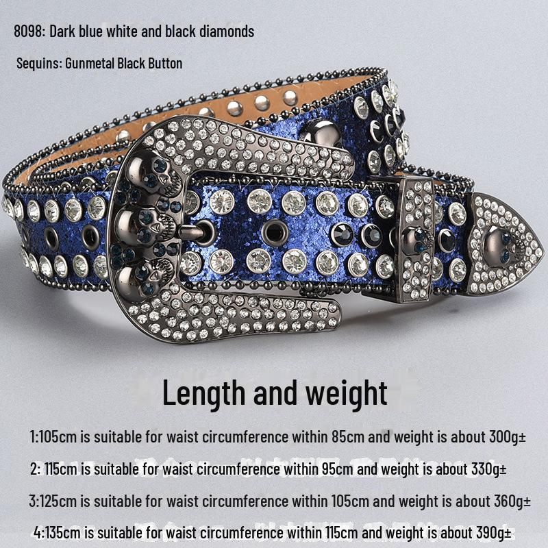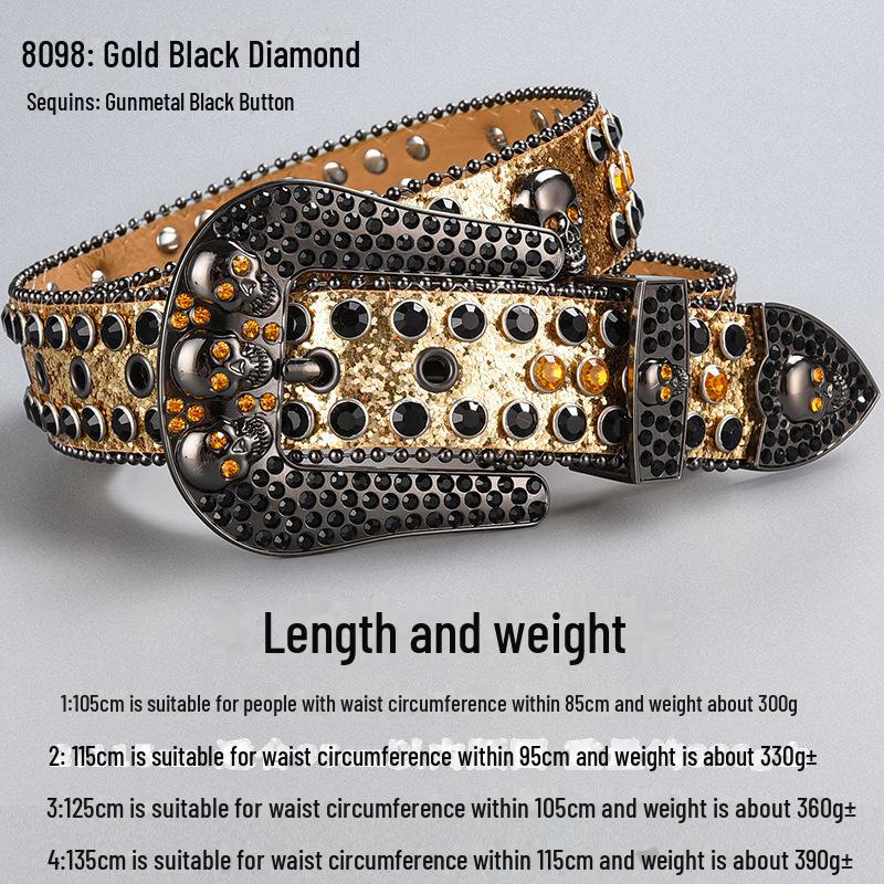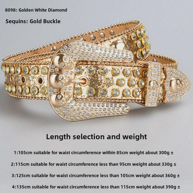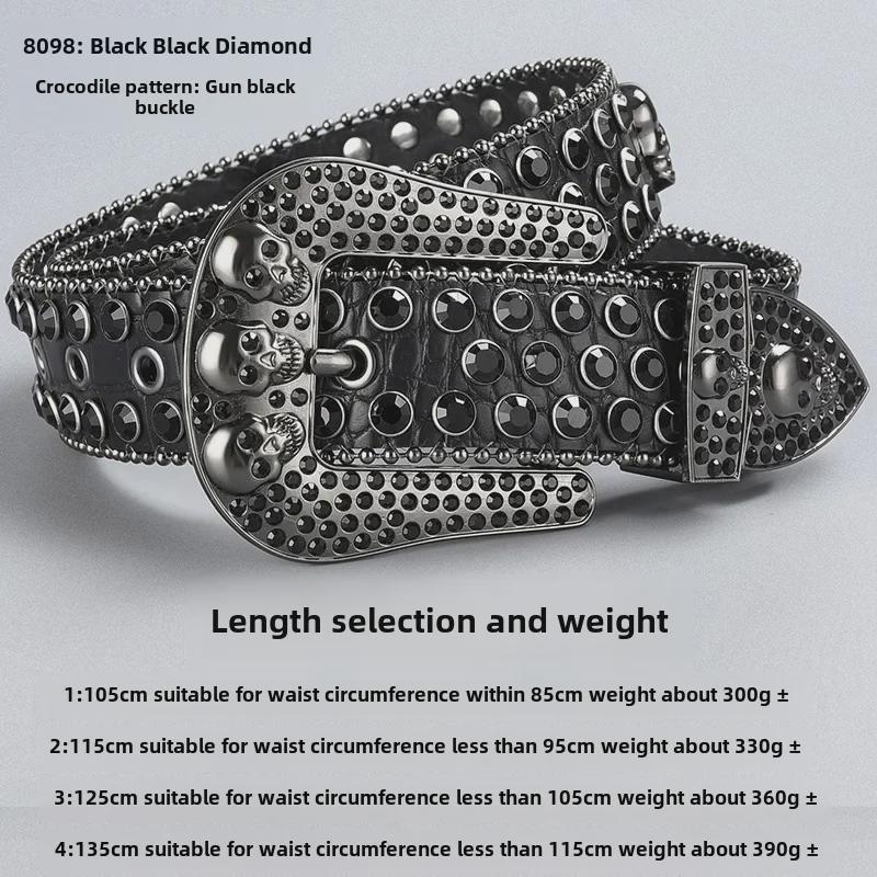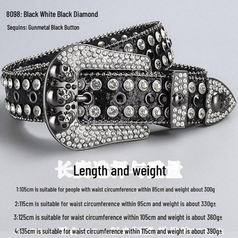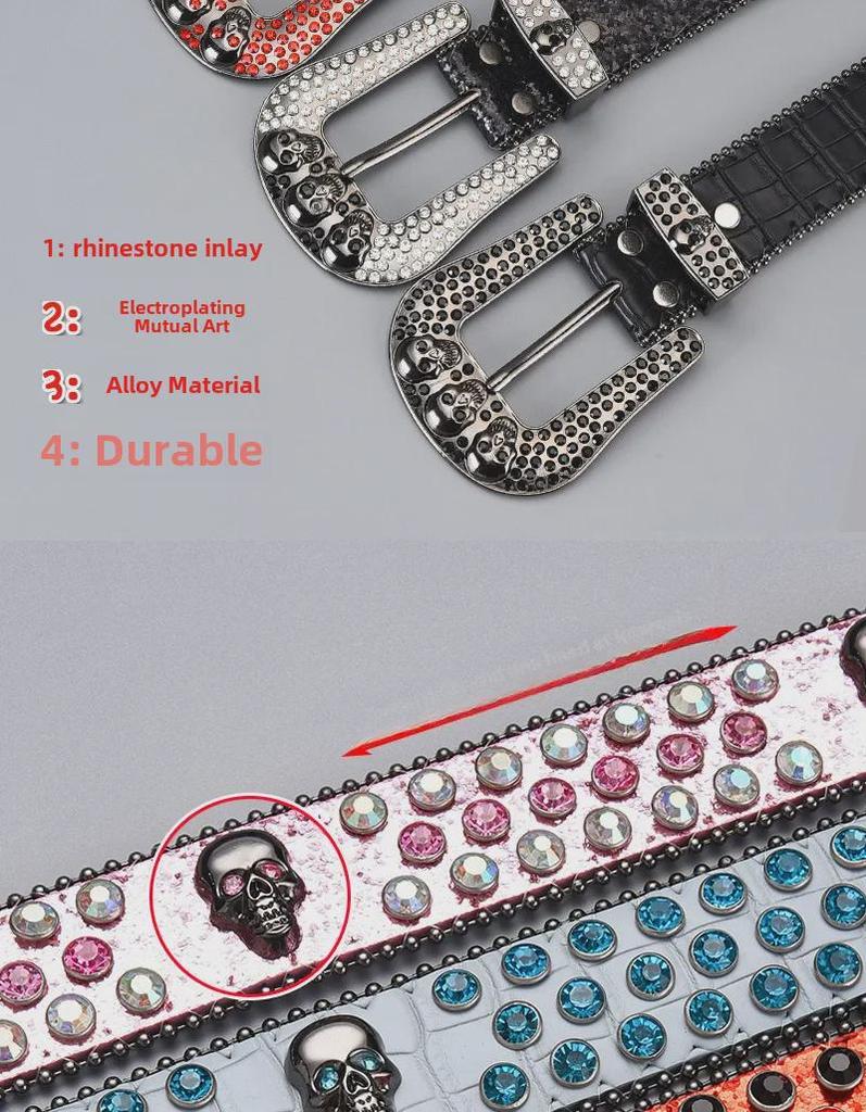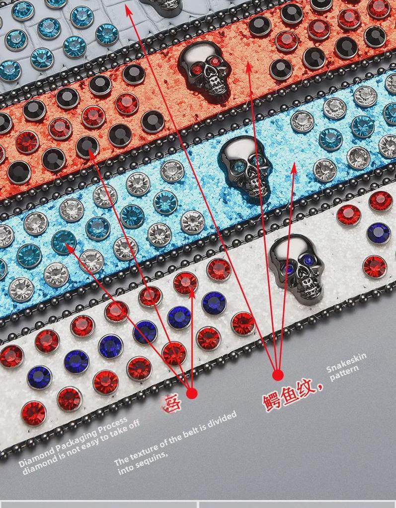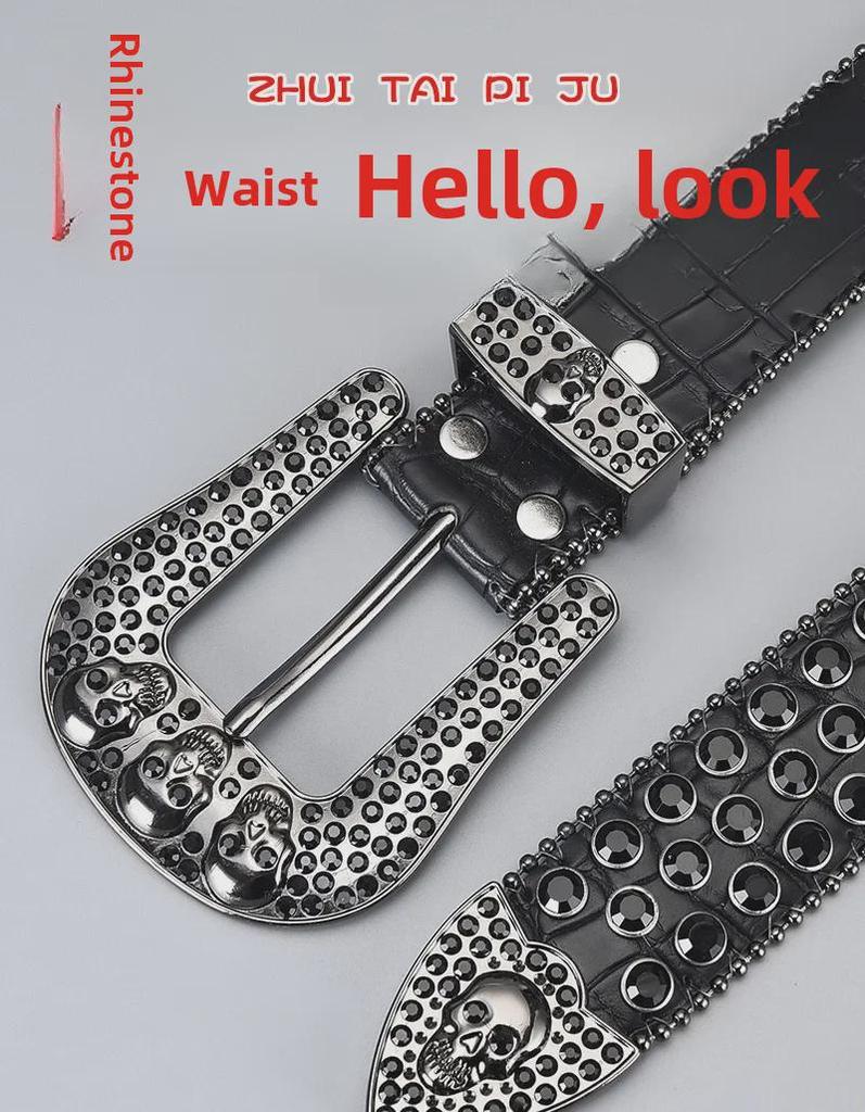 Высококачественный ремень с пряжкой в виде темного черепа, стразами и бриллиантовыми пайетками