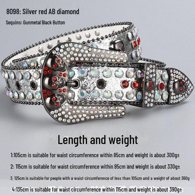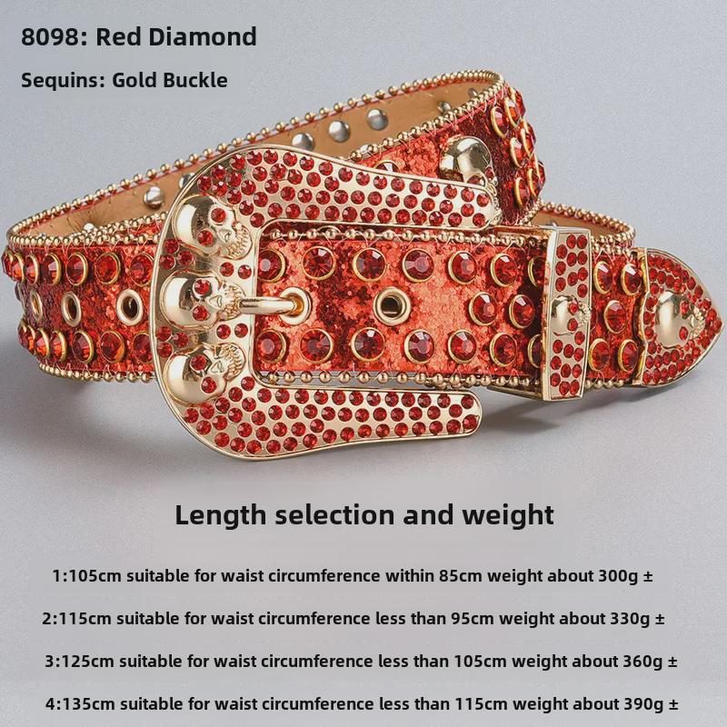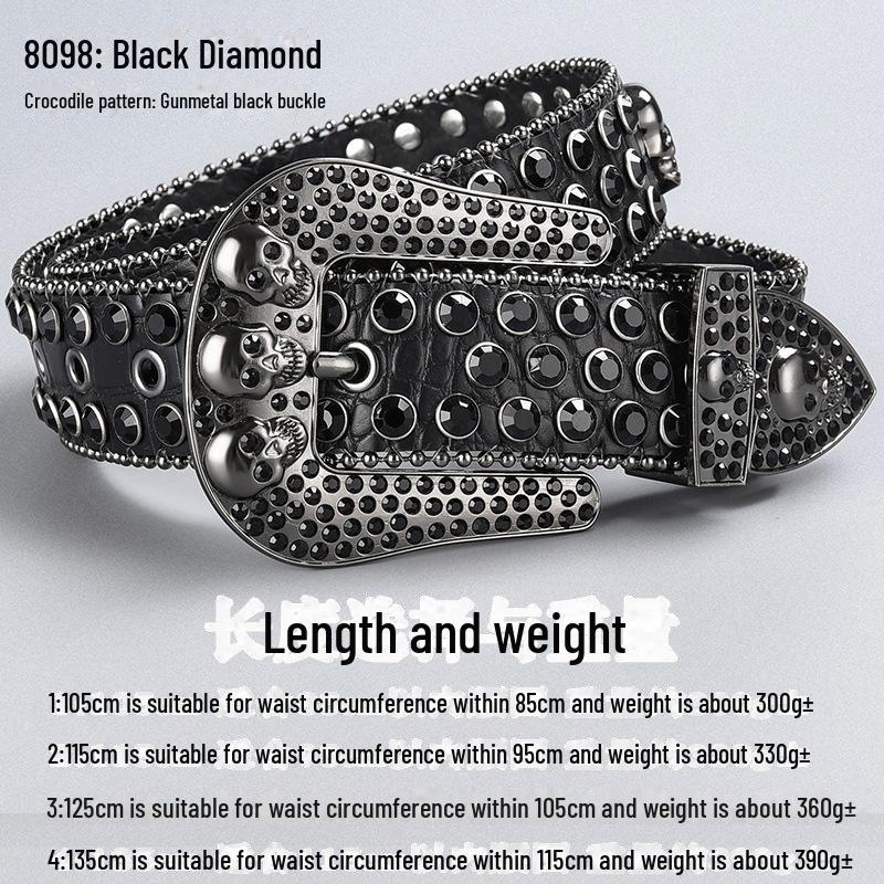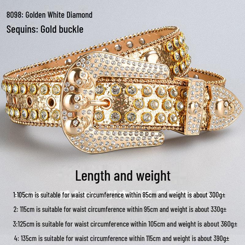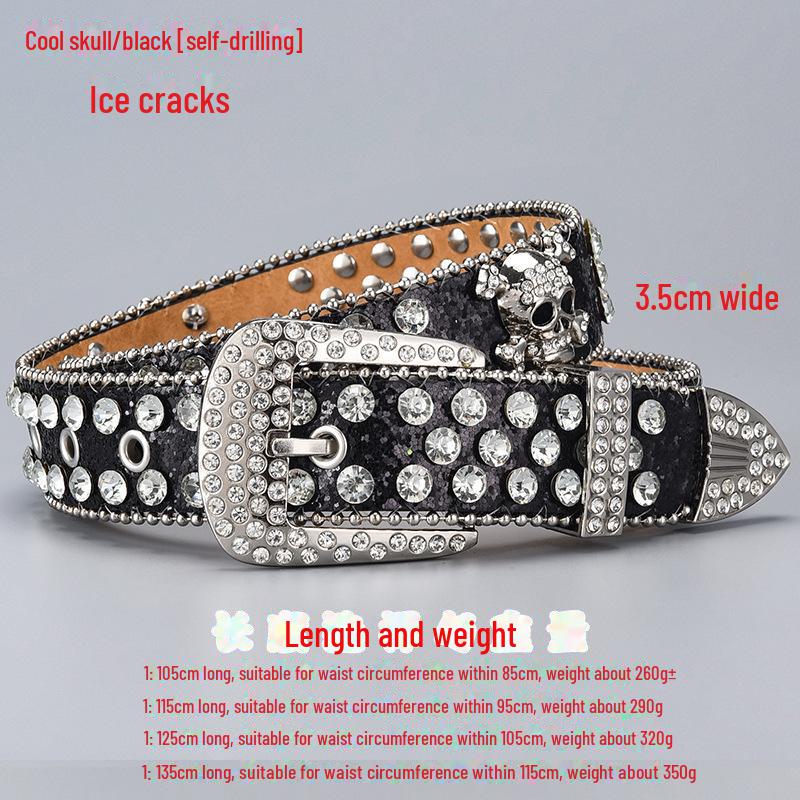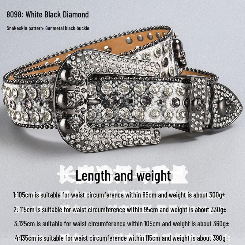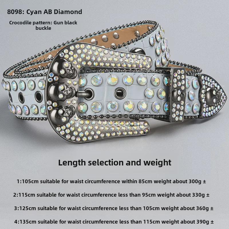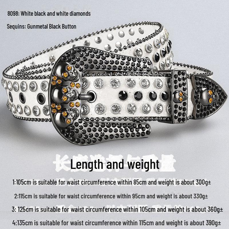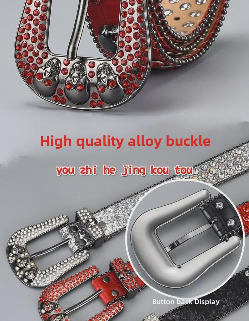Высококачественный ремень с пряжкой в виде темного черепа, стразами и бриллиантовыми пайетками