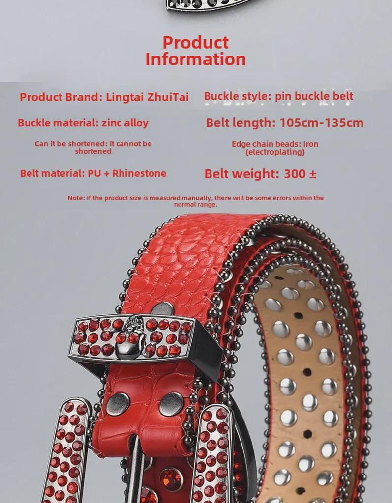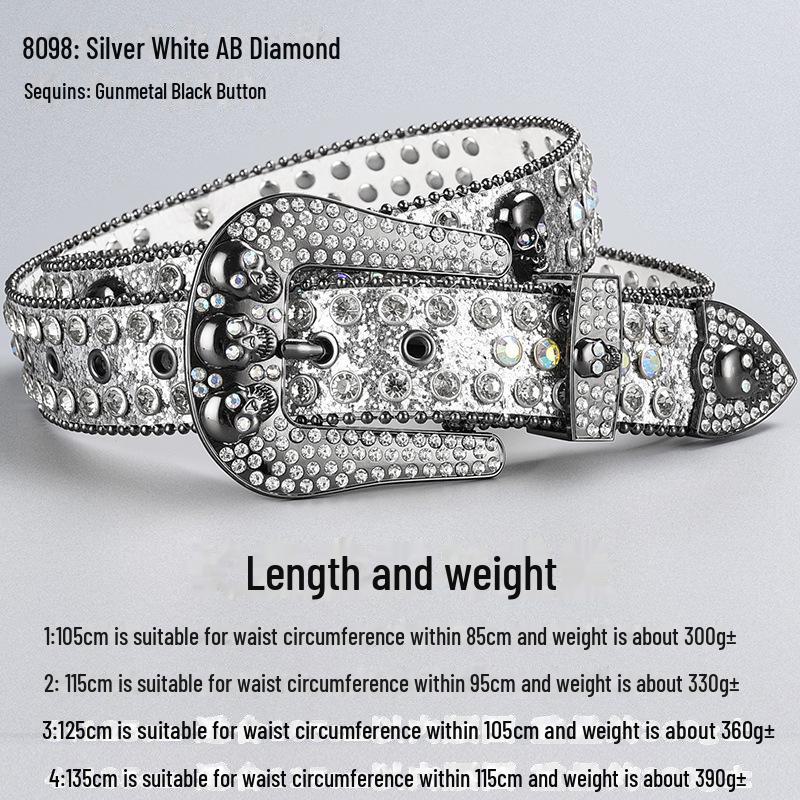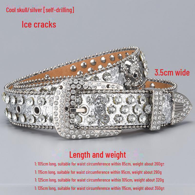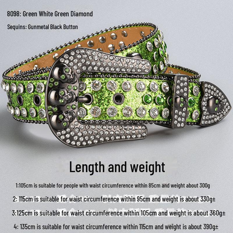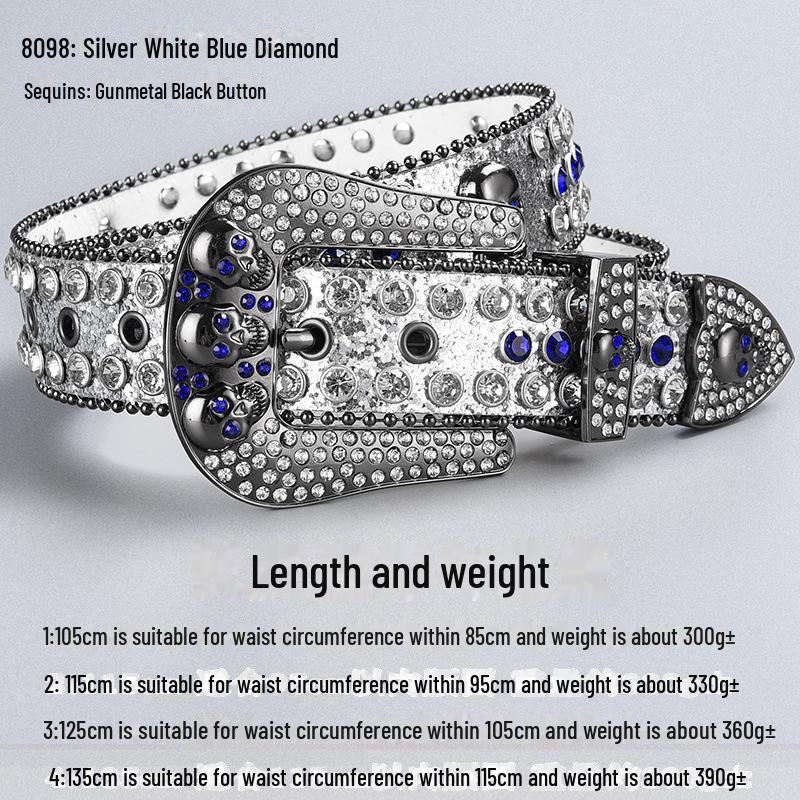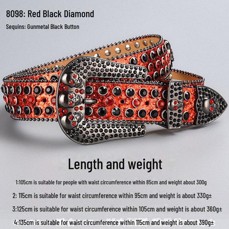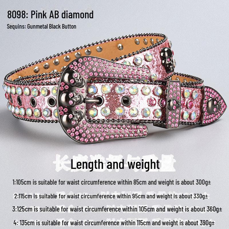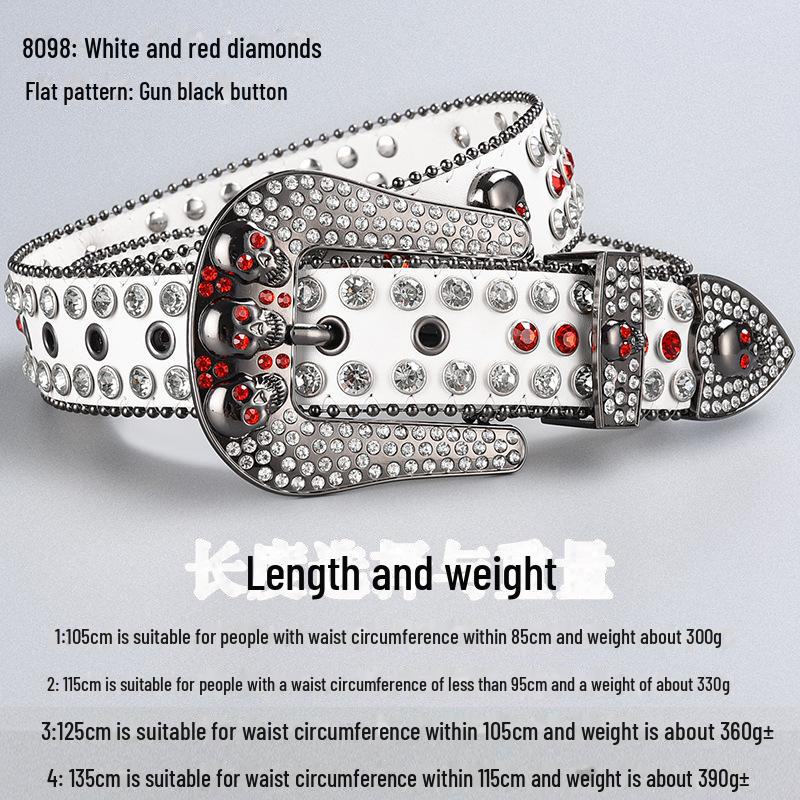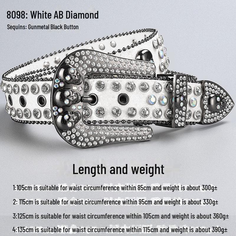 Высококачественный ремень с пряжкой в виде темного черепа, стразами и бриллиантовыми пайетками