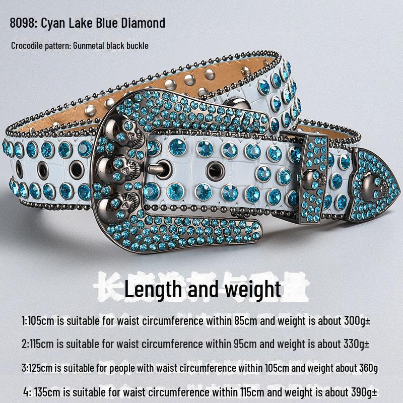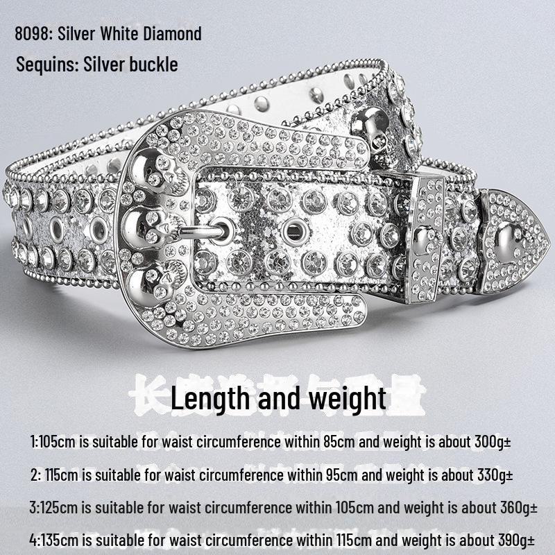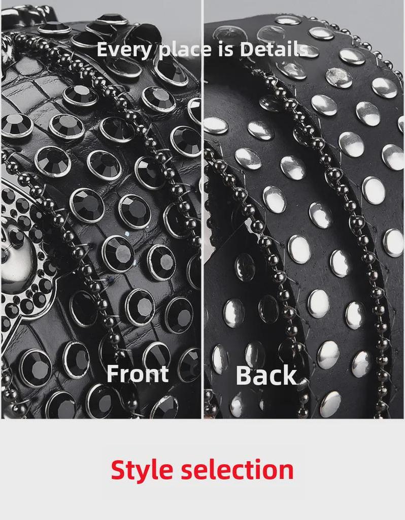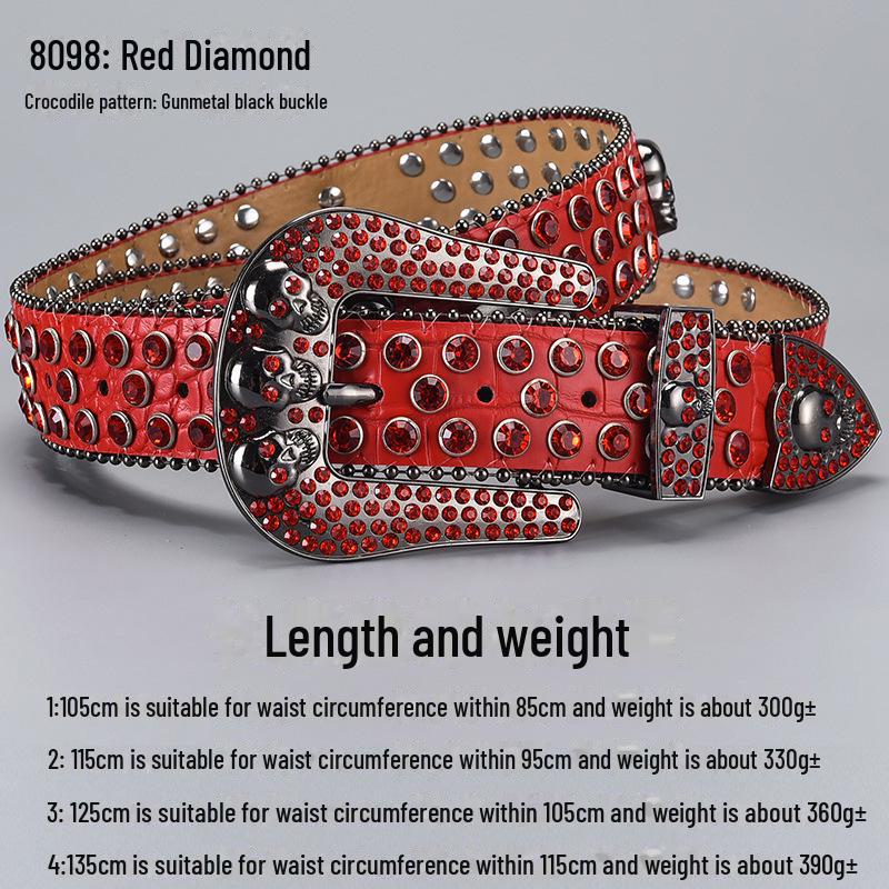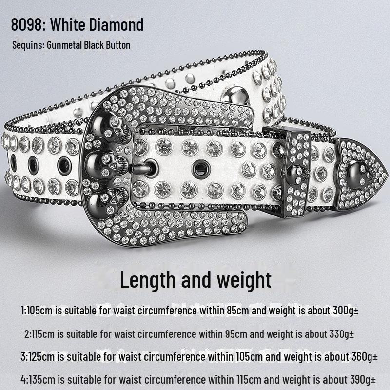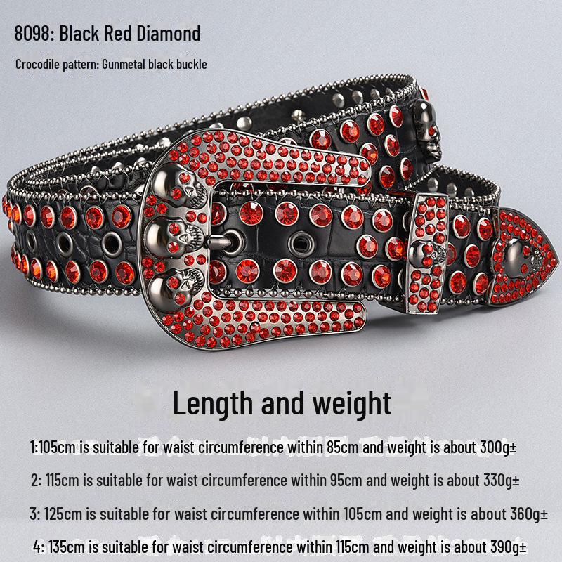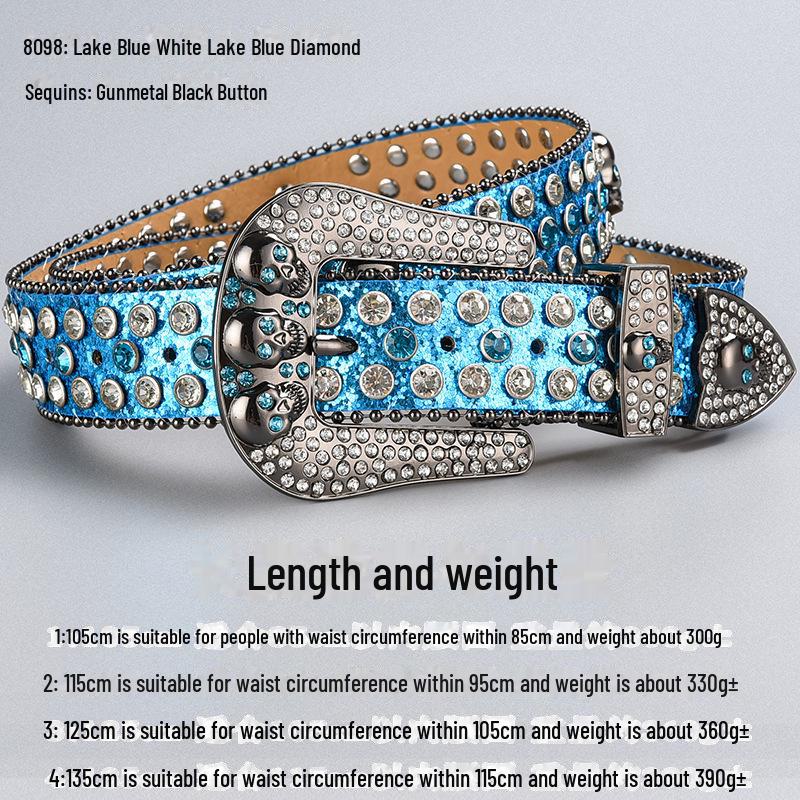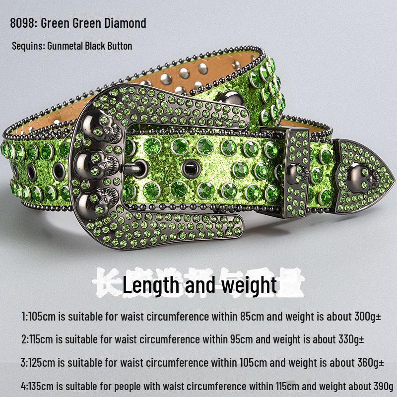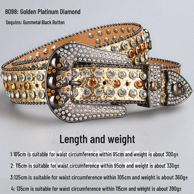 Высококачественный ремень с пряжкой в виде темного черепа, стразами и бриллиантовыми пайетками