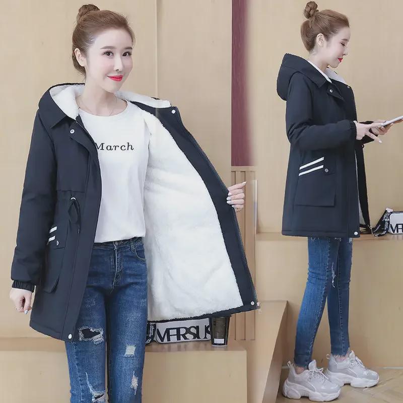Женская облегающая ветровка с капюшоном - плюшевая и утолщенная, мода осень/зима 2023, средняя/длинная длина — купить товар онлайн с бесплатной доставкой по всему миру!